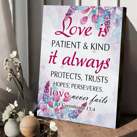 Love Is Patient And Kind Poster Canvas - 1 Corinthians 13 4 Hanging Wall Art