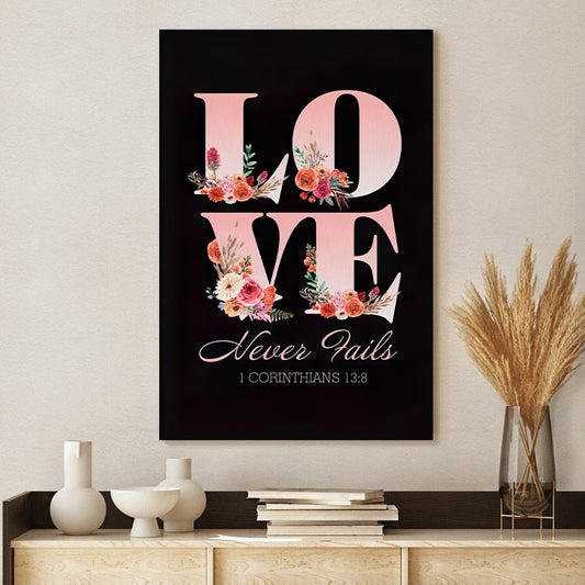 Love Never Fails Canvs Poster - 1 Corinthians 13 8 Decor Wall Art
