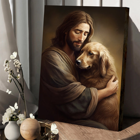 Jesus Hugging His Dog 1 - Canvas Pictures - Jesus Christ Canvas - Christian Wall Art