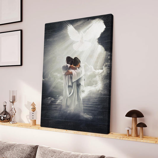 Jesus Hugging Man Dove Canvas Art - Christian Art - Bible Verse Wall Art - Religious Home Decor