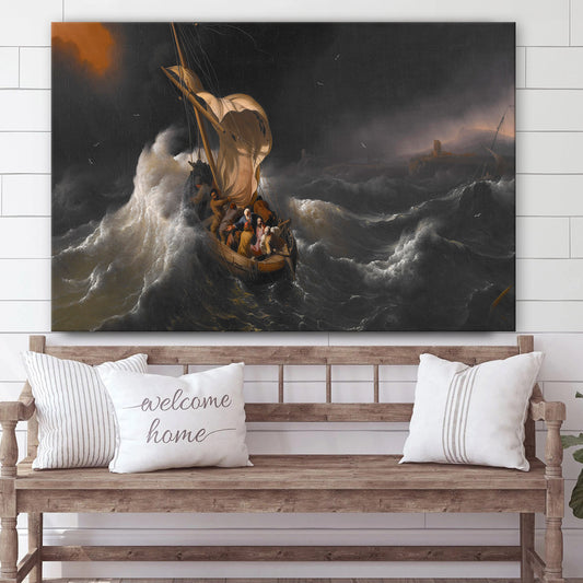 Jesus In Storm - Jesus Canvas Wall Art - Christian Wall Art