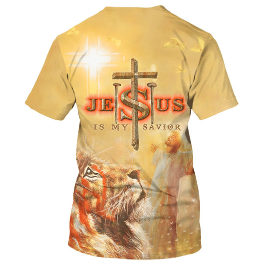 Jesus Is My Savior Shirts - Jesus With His Arms Open Lion 3d Shirts - Christian T Shirts For Men And Women