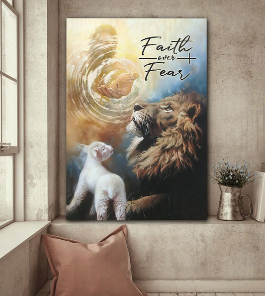 Jesus Lion And Lamb Faith Over Fear Canvas Posters - Christian Wall Posters - Religious Wall Decor