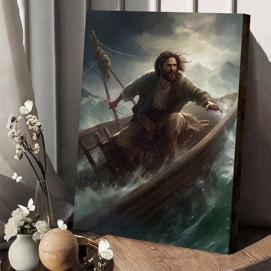 Jesus On A Boat In A Storm - Canvas Picture - Jesus Christ Canvas - Christian Wall Art