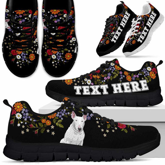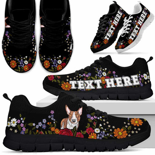 Custom Name Bull Terrier Sneaker, Bull Terrier Flower Floral Colorful Dog Lovers Sneakers Gym Running Shoes, Best Running Shoes