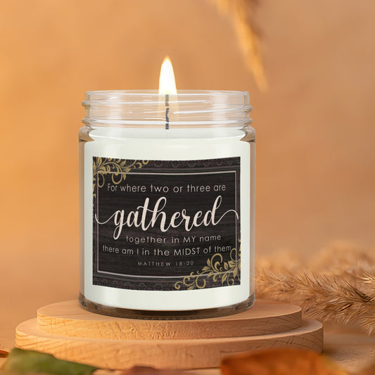 For Where Two Or Three Are Gathered - Christian Candles - Bible Verse Candles - Natural Candle - Soy Wax Candle 9oz - Ciaocustom