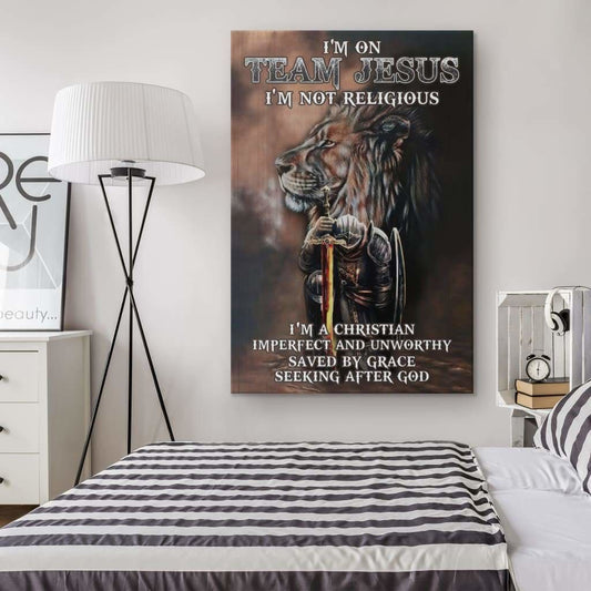 I'm On Team Jesus Canvas Wall Art - Lion & Warrior Canvas - Jesus Canvas Pictures - Christian Canvas Wall Art