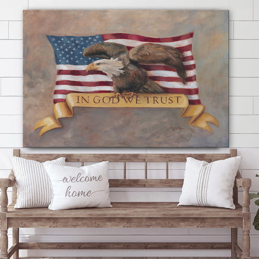 In God We Trust American Flag Patriotic Wall Art - Christian Canvas Wall Art