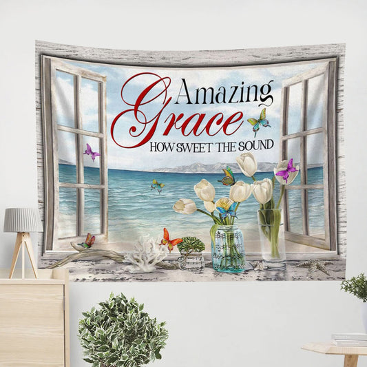 Christian Wall Art Amazing Grace How Sweet The Sound Butterflies Tapestry - Jesus Tapestry - Tapestry Wall Hanging