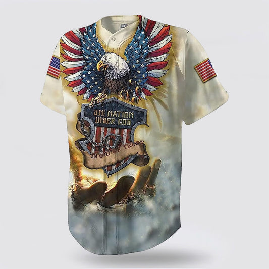 Wings, American Flag, Cross Baseball Jersey - One Nation Under God Custom Baseball Jersey