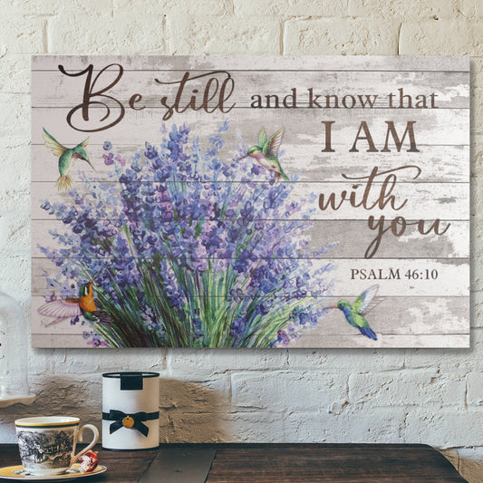 Bible Verse Wall Art Canvas - Bellflowers And Hummingbird - Be Still And Know That I Am With You Canvas - Ciaocustom