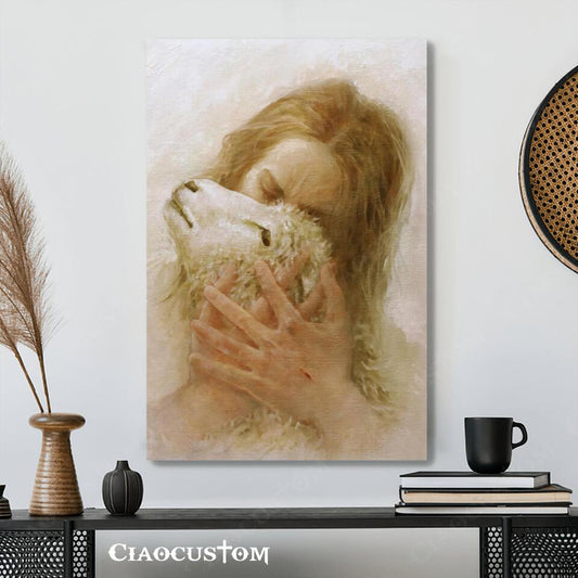 Jesus Kissing Lamb - Jesus Wall Pictures - Jesus Canvas Painting - Jesus Poster - Jesus Canvas - Christian Gift - Ciaocustom