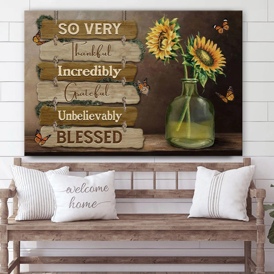 So Very Thankful Incredibly Grateful Unbelievably Blessed Wall Art Canvas Christian Decor