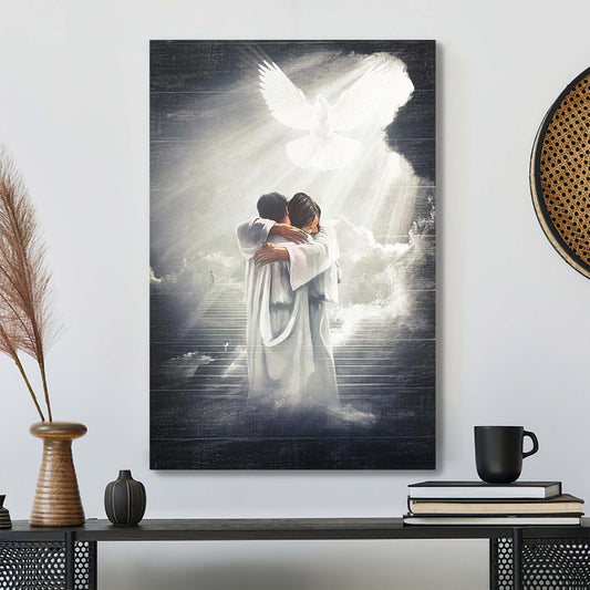 Man Hugging Jesus In Heaven Canvas Wall Art - Bible Verse Canvas - Scripture Canvas Wall Art - Ciaocustom