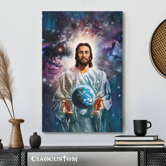 Holding The Earth In His Hand Canvas Wall Art - Ciaocustom