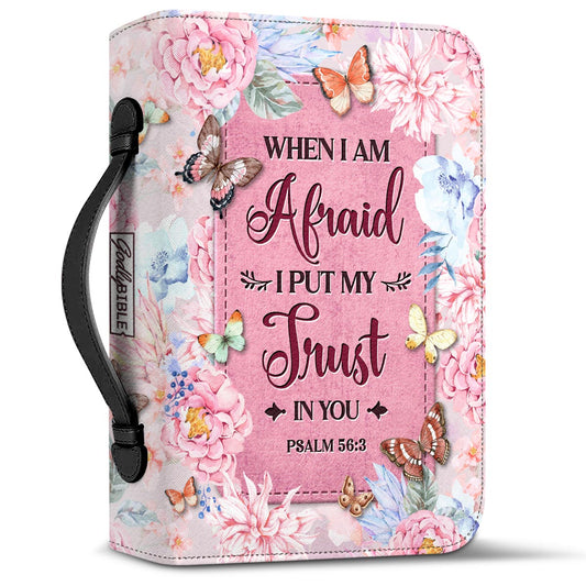 When I Am Afraid I Put My Trust In You Psalm 56 3 Butterfly Flower Personalized Bible Cover - Pastor's Bible Covers