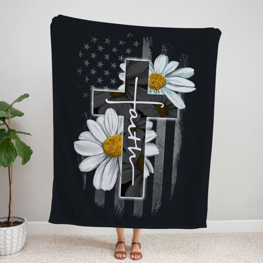 Faith Cross Daisy Fleece Blanket - Christian Blanket - Bible Verse Blanket