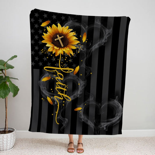 Faith Cross Sunflower Fleece Blanket - Christian Blanket - Bible Verse Blanket