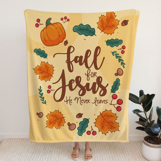 Fall For Jesus He Never Leaves Fleece Blanket - Christian Blanket - Bible Verse Blanket