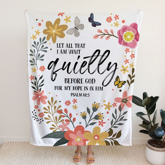 Let All That I Am Wait Quietly Before God Fleece Blanket - Christian Blanket - Bible Verse Blanket
