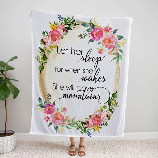 Let Her Sleep For When She Wakes She Will Move Mountains Fleece Blanket - Christian Blanket - Bible Verse Blanket