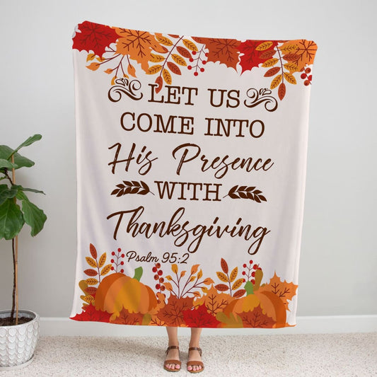 Let Us Come Into His Presence With Thanksgiving Psalm 952 Fleece Blanket - Christian Blanket - Bible Verse Blanket