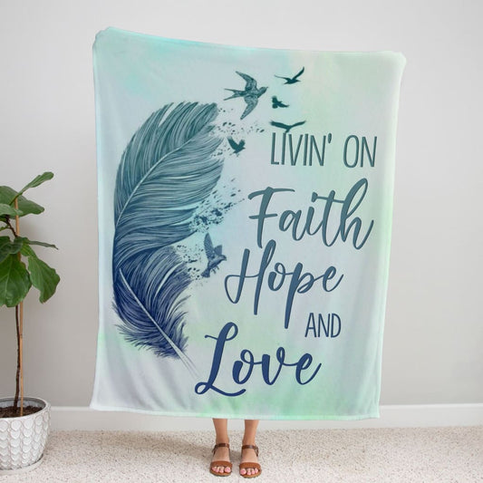Living On Faith Hope And Love Fleece Blanket - Christian Blanket - Bible Verse Blanket