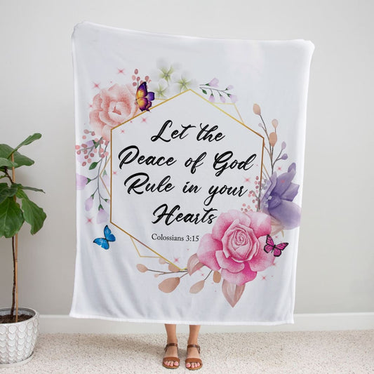 Let The Peace Of God Rule In Your Hearts Colossians 315 Fleece Blanket - Christian Blanket - Bible Verse Blanket