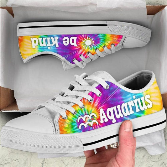 Aquarius Zodiac Bekind Tie Dye Low Top Shoes , Low Top Sneaker, Low Top Canvas Shoes