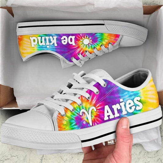 Aries Zodiac Bekind Tie Dye Canvas Low Top Shoes, Low Top Sneaker, Low Top Canvas Shoes