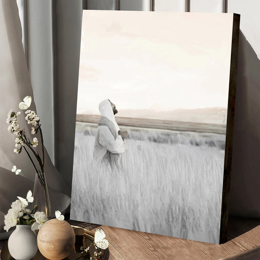 Jesus Kneeling In Prayer In A Field Canvas Pictures - Jesus Christ Art - Christian Canvas Wall Art