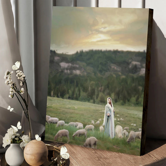 Jesus Standing A Mid A Flock Of Sheep Reaching Out A Hand Canvas Pictures - Jesus Christ Art - Christian Canvas Wall Art