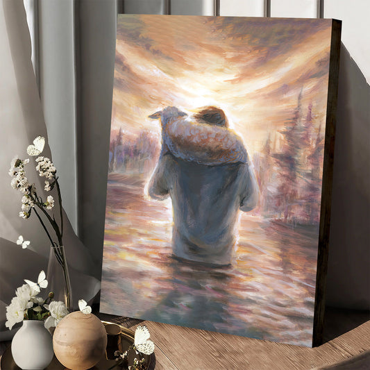 Jesus Carrying Lamb On Shoulders Through Water Canvas Pictures - Jesus Canvas Painting - Christian Canvas Prints