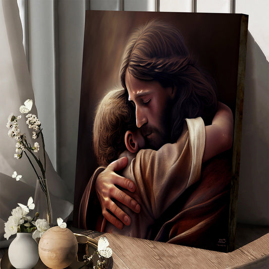 Jesus Hugging Boy Canvas Wall Art - Jesus Canvas Picture - Christian Canvas Art