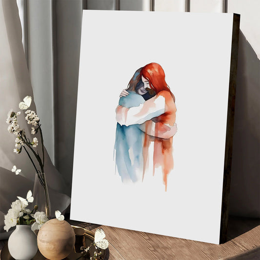 Sacred Embrace Modern Wall Art Jesus Painting Minimalist - Canvas Pictures - Jesus Canvas Art - Christian Wall Art