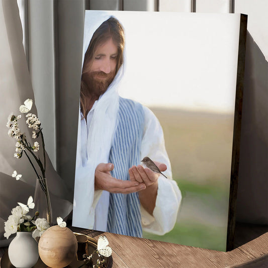Sparrow Scripture Christ Holding - Canvas Pictures - Jesus Canvas Art - Christian Wall Art