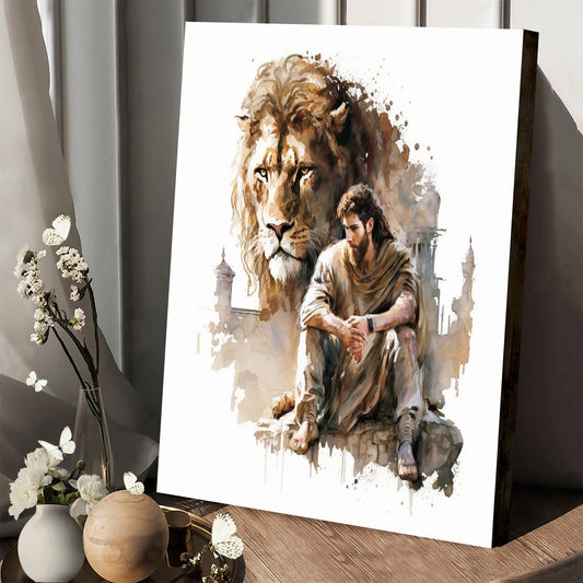 Daniel In The Lions Den In Watercolor - Canvas Pictures - Jesus Canvas Art - Christian Wall Art