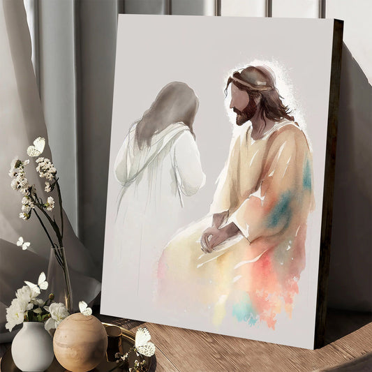 Jesus Christ Christian Gift Watercolor Woman Confessing - Canvas Pictures - Jesus Canvas Art - Christian Wall Art