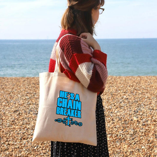 • He's A Chain Breaker Canvas Tote Bags - Christian Tote Bags - Printed Canvas Tote Bags - Religious Tote Bags - Gift For Christian - Ciaocustom