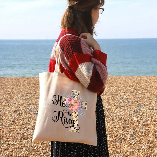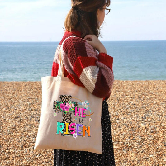 • He Is Risen Canvas Tote Bags - Christian Tote Bags - Printed Canvas Tote Bags - Cute Tote Bags - Religious Tote Bags - Gift For Christian - Ciaocustom