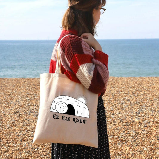 • He Has Risen Canvas Tote Bags - Christian Tote Bags - Printed Canvas Tote Bags - Cute Tote Bags - Religious Tote Bags - Gift For Christian - Ciaocustom