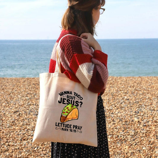 Wanna Taco About Jesus Canvas Tote Bags - Christian Tote Bags - Printed Canvas Tote Bags - Cute Tote Bags - Gift For Christian - Ciaocustom