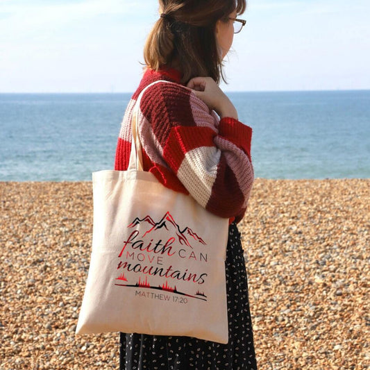 Faith Can Move Mountains Canvas Tote Bags - Christian Tote Bags - Printed Canvas Tote Bags - Cute Tote Bags - Gift For Christian - Ciaocustom