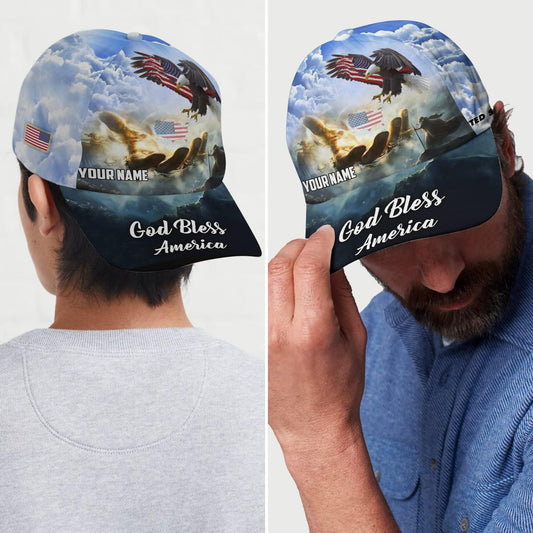 U.S Patriotic Eagle Custom Name All Over Print Baseball Cap - Christian Hats For Men Women