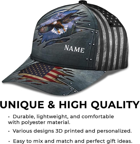 American Flag Bad Eagle Custom Name Baseball Cap - Christian Hats for Men and Women