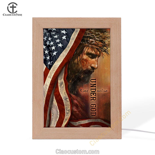• The Face Of Jesus American Flag One Nation Under God Frame Lamp