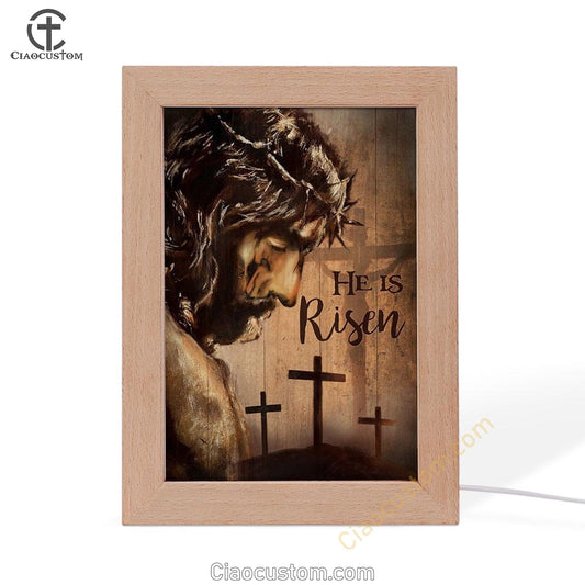 The Face Of Jesus, Crown Of Thorn, Cross, He Is Risen Frame Lamp