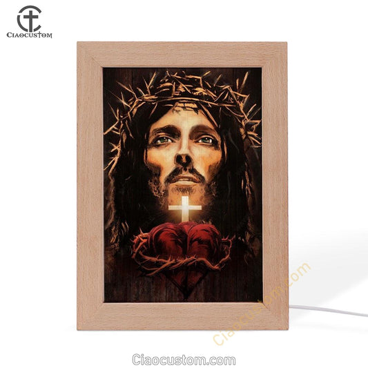 The Face Of Jesus Heart Crown Of Thorn Frame Lamp