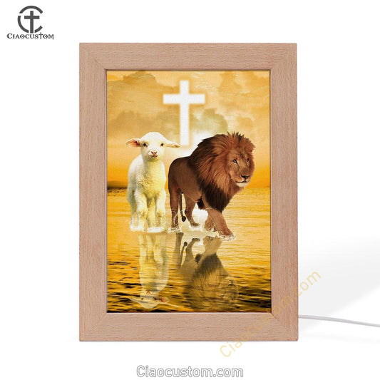 The Lion Of Judah And The Lamb Of God Frame Lamp Prints - Bible Verse Wooden Lamp - Scripture Night Light