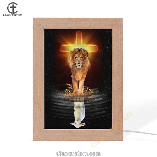 The Lamb Of God And Lion Of Judah Frame Lamp Prints - Bible Verse Wooden Lamp - Scripture Night Light